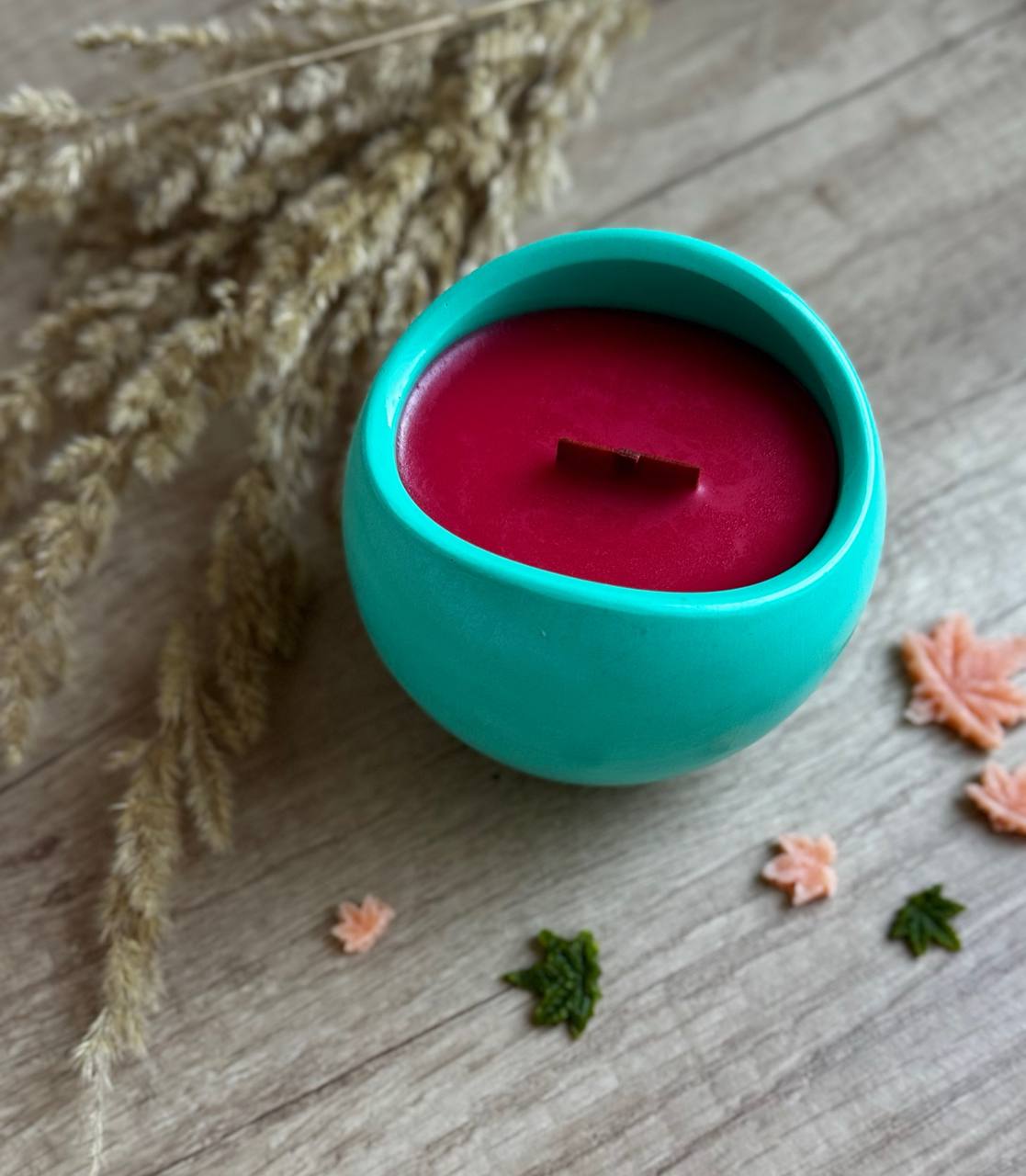 Turkusowe naczynie nadaje świecy nowoczesny, stylowy wygląd, a drewniany knot podczas palenia subtelnie skwierczy, przypominając dźwięk kominka. Idealna zarówno do relaksu po ciężkim dniu, jak i jako oryginalny prezent.
