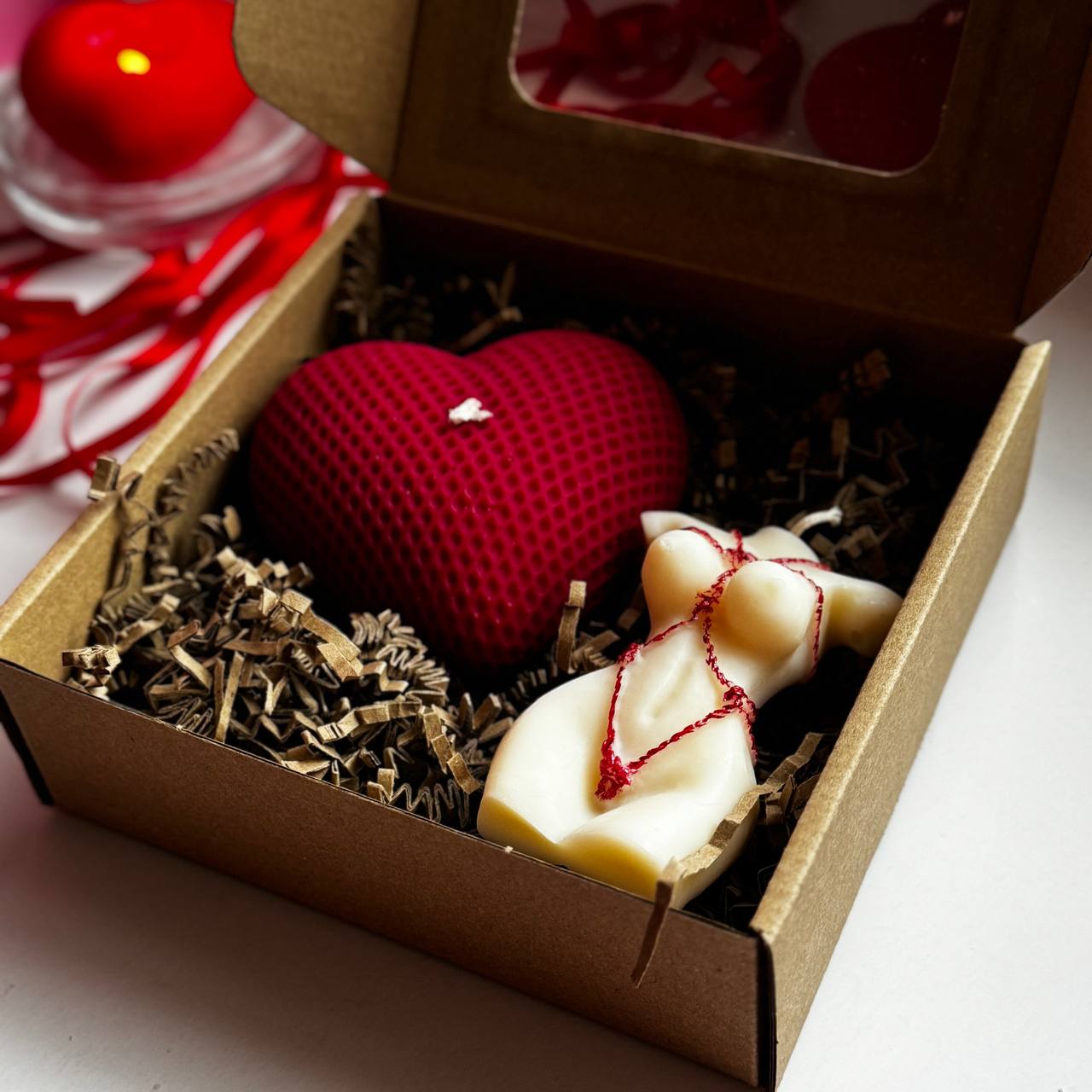 Druga świeca to dekoracyjna świeca w rozmiarze S bez zapachu. Ma minimalistyczny, designerski wygląd i świetnie uzupełnia cały zestaw, zachowując balans między estetyką a symboliką.